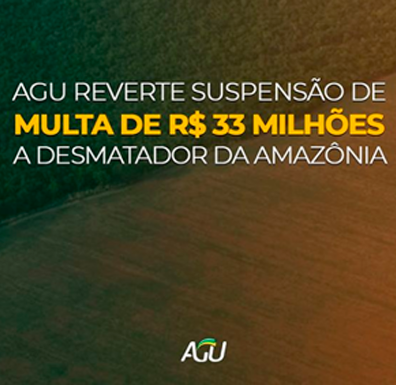 Advocacia Geral da União (AGU) reverteu no Tribunal Regional Federal da 1ª Região (TRF1) decisão de primeira instância que suspendia uma ação de cobrança de R$ 33 milhões de um desmatador da floresta amazônica em Barra do Garças, em Mato Grosso.